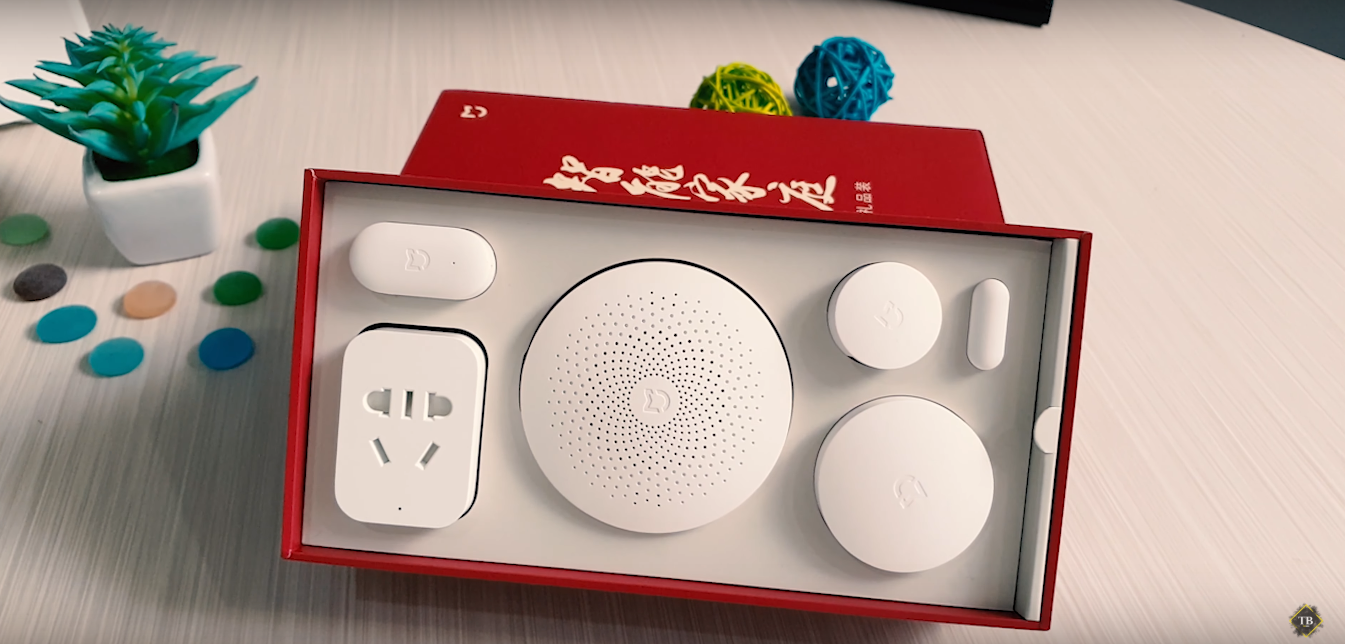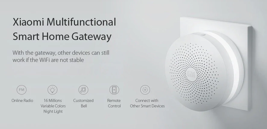 මේ සුදුපාටට රවුමක් වගේ තියෙන්නේ Xiaomi Mijia Smart Home Kit එකේ ප්රධානම උපකරණය. මේකට අපි Gateway එක. එහෙමත් නැත්නම් බහුකාර්ය දුරස්ථ පාලකය කියලත් කියන්න පුළුවන්. මේ තියෙන අනිකුත් gadgets හතර gateway එකත් එක්ක සම්බන්දවෙන අතර gateway එකෙන් කරන්න පුළුවන් තවත් වැඩ කිහිපයක්ම අපට බලාගන්න පුළුවන්. මේ gateway එක අපිට night lamp එකක් ආකාරයෙන් alarm එකක් ආකාරයෙන් එහෙමත් නැතිනම් speaker එකක් ආකාරයෙන් උනත් භාවිතා කරගන්න පුළුවන්.